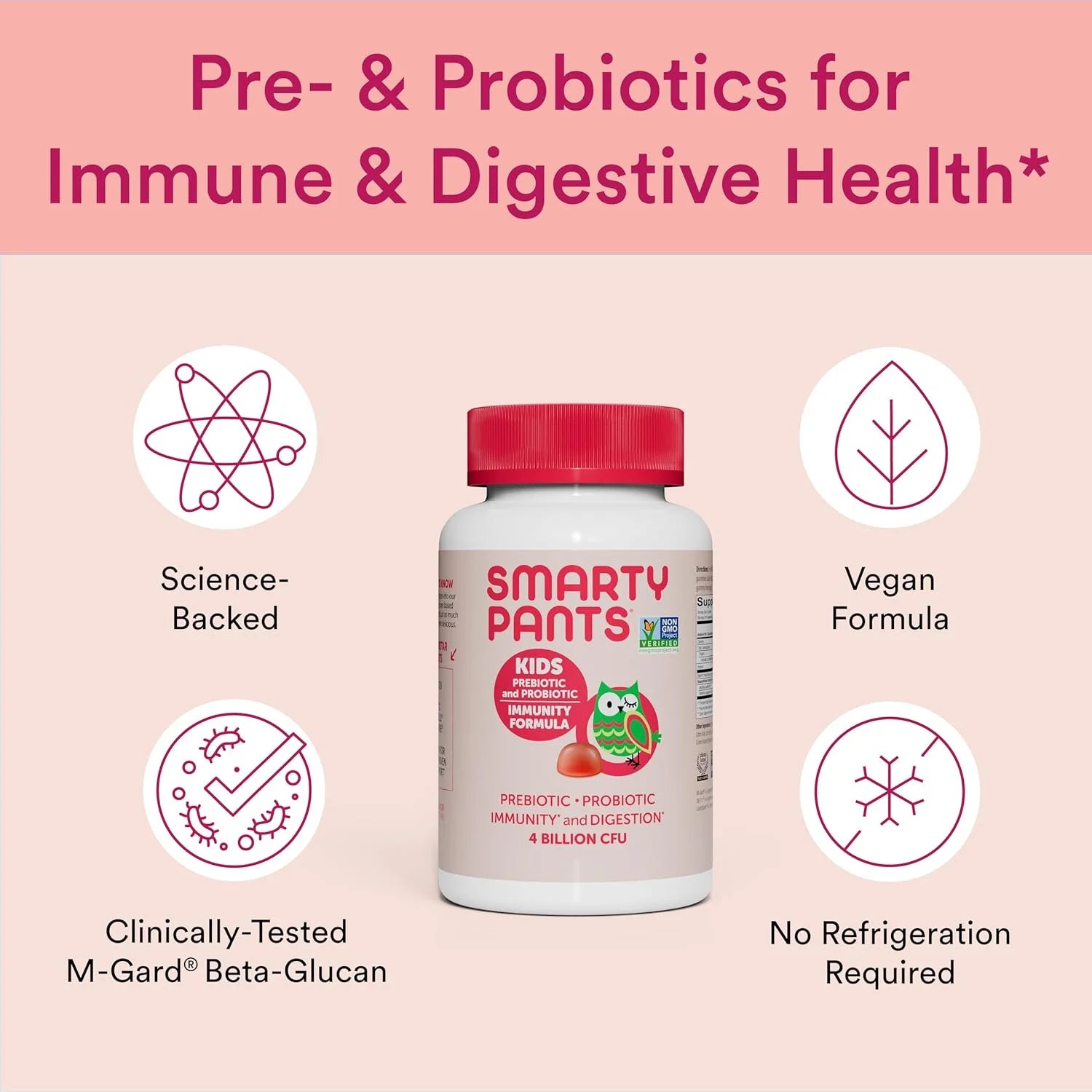- Childrens Probiotics for Kids 3+ Years: The SmartyPants Kids Prebiotic and Probiotic Immunity Formula gummies help support your little one’s digestive health and immune system.
